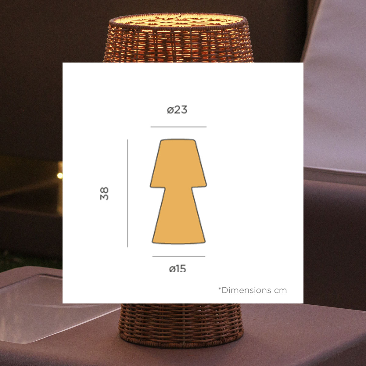 The Lola 40 Nature decorative table lamp is hand braided with natural fibres. This lamp is the perfect complement to illuminate any space in your home or garden giving it a natural touch. The Lola 40 Nature decorative table lamp is available in two finishes: